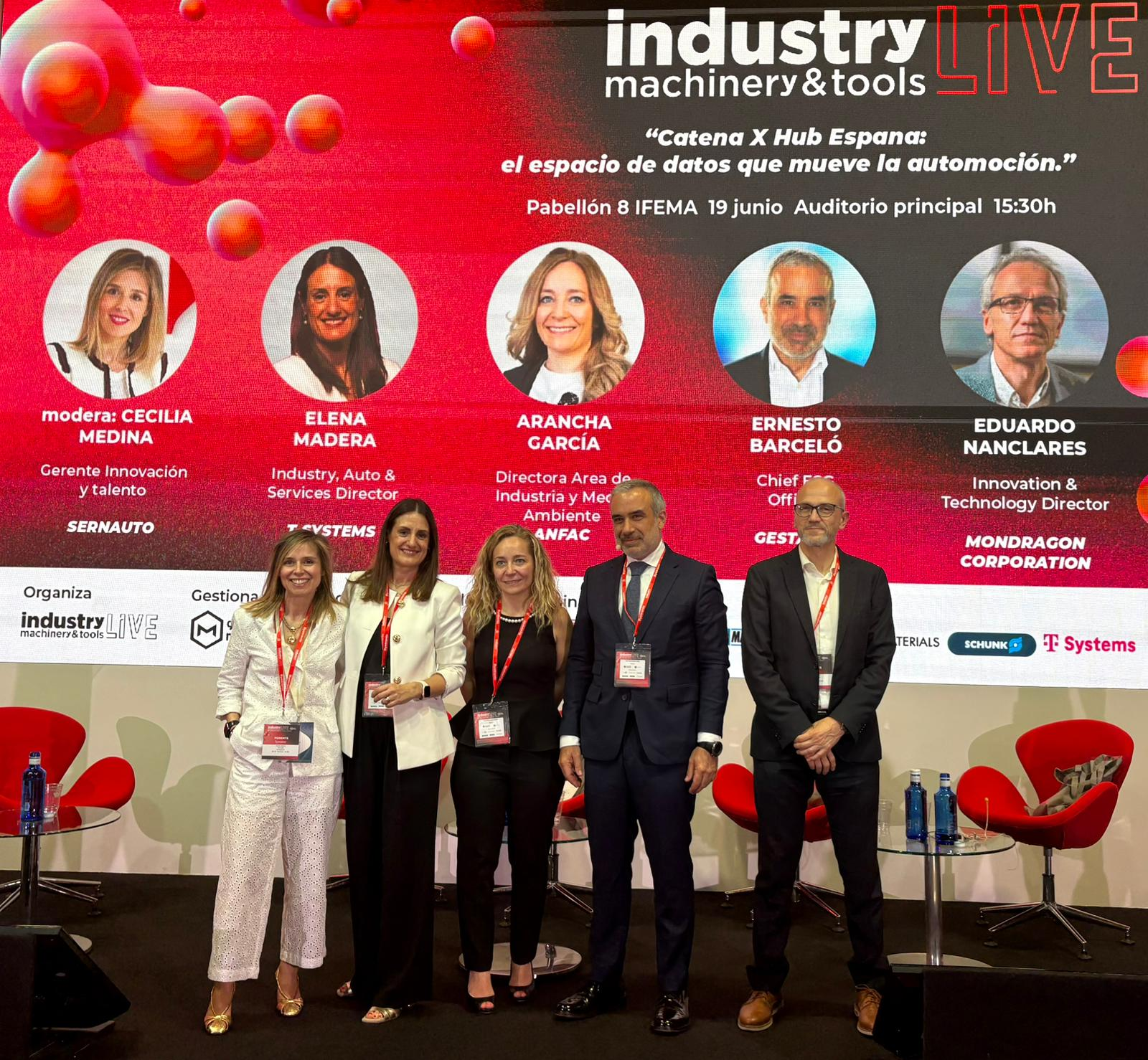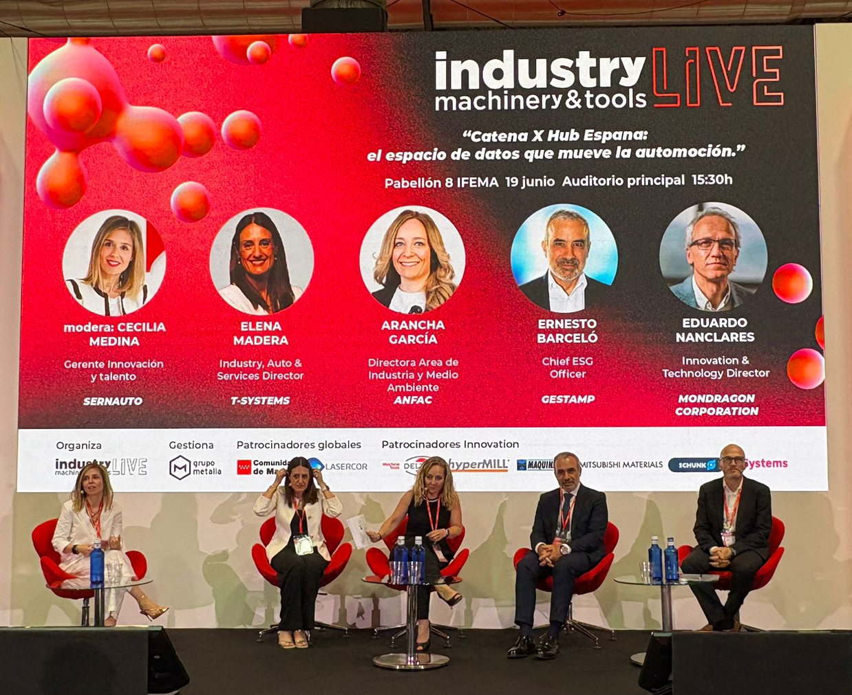 El pasado 19 de junio a las 15:30 tuvo lugar una mesa redonda en el palacio de IFEMA (Madrid), bajo el título “Catena X Hub España: el espacio de datos que mueve la automoción”. Durante la sesión se abordaron los retos y oportunidades de Catena X, un ecosistema abierto y colaborativo que impulsa el intercambio seguro y eficiente de datos entre todos los actores de la cadena de valor del automóvil.