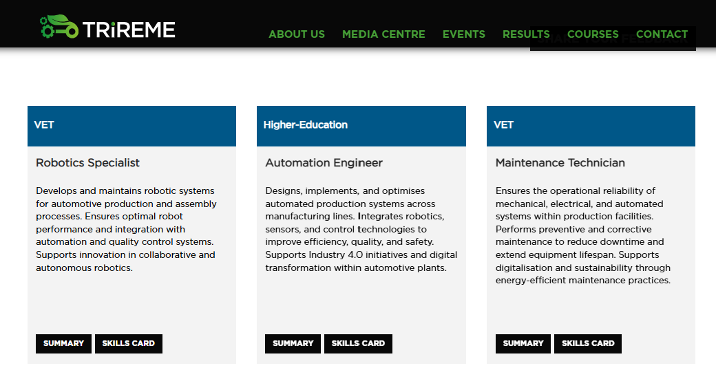 Un aspecto especialmente relevante de este lanzamiento es que los perfiles profesionales presentados aún están en versión borrador, y TRIREME invita a la comunidad a dar su opinión. En la página de Skills Cards hay un enlace para compartir feedback, con el objetivo de refinar y adaptar estas tarjetas a las necesidades reales del mercado laboral automotriz. Estará abierto hasta finales de febrero.