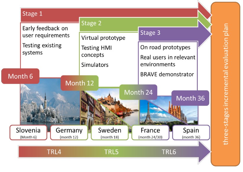 El proyecto BRAVE contempla pruebas en circuito cerrado cada 6 meses en varios de los países participantes. A España le tocará en el mes 36 del proyecto alojar estos test.